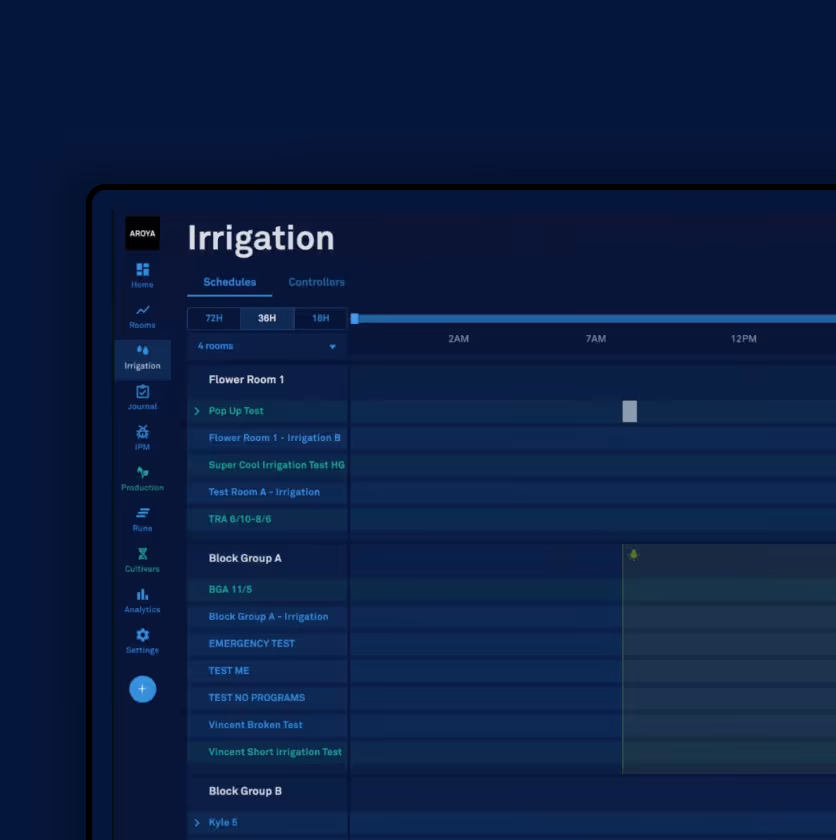 Transform irrigation from guesswork to precision science. IRRIGAIT™ links and syncs with AROYA’s other AI modules to give you data-backed insight and manual controls needed to implement expert irrigation strategies with exactness and confidence.