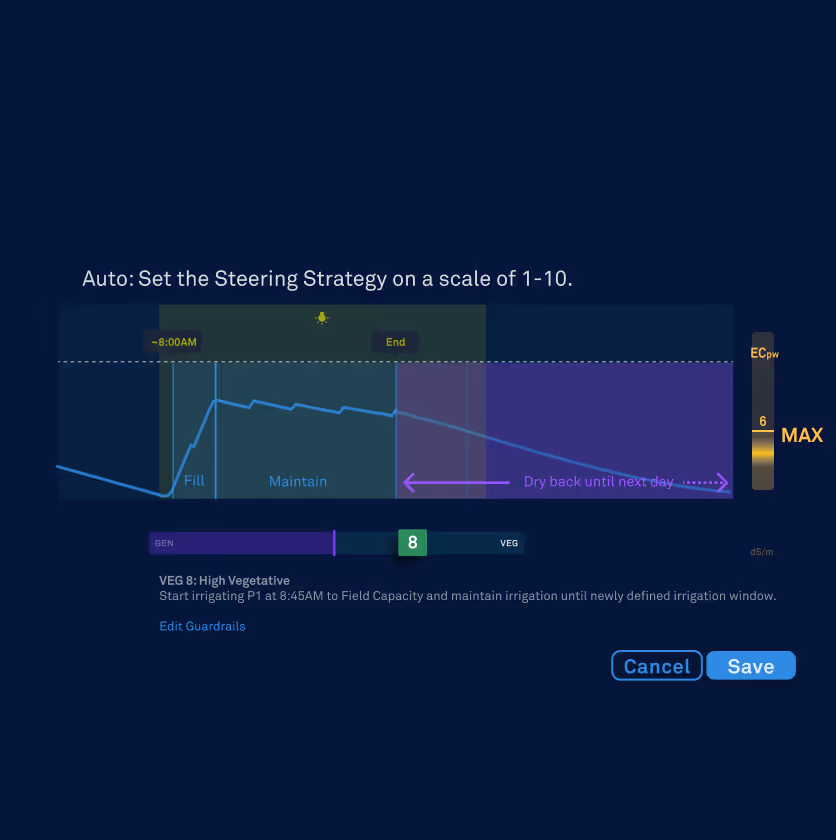 While other “intelligent” systems follow rigid recipes or require extensive scheduling, AUTOMAIT enables AROYA’s auto-irrigation system to continuously adjust to your plants' changing needs and evolving environmental conditions.