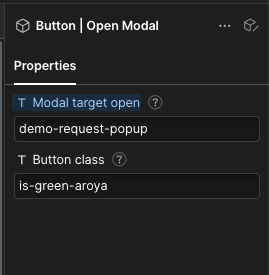 - A button has an assigned class "is-green-aroya". This allows you to style the button.