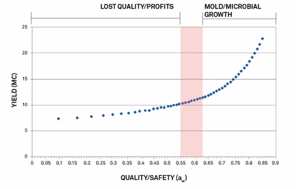 It could be beneficial for this organization to measure water activity instead and use that number to get moisture values. Here’s how that would work: